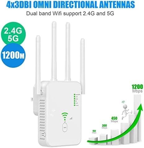 Amplificator Semnal Wireless, Range Extender Retea WiFi 1200M, 3 functii Repeater, Mod AP si Router, Transfer 300MBs, 4 Antene, Retea 2.4 G/5G, Conexiune WEP, WPA si WPA2, Slot LAN, Negru