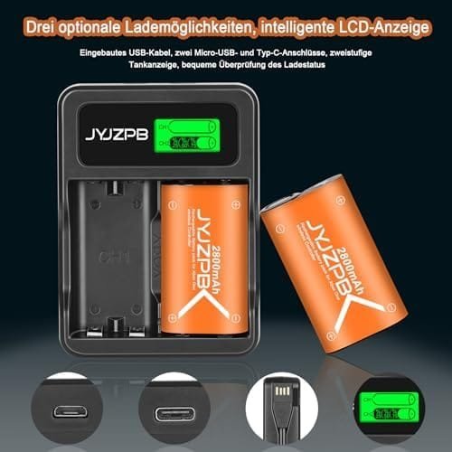 - Capacitate Mare de 2800 mAh: Setul include 4 baterii reîncărcabile de mare capacitate (2800 mAh) care asigură o durată de joc extinsă pentru controlerele tale Xbox. Bucură-te de mai multe ore de joc fără întrerupere.