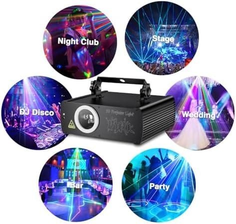 Ehaho 3D animație lumini laser RGB pentru scenă este capabil de a produce amestecuri de culori laser mai variate (nu doar culorile R, G, B). Poate proiecta fascicule laser colorate, sute de modele și câteva grafice animate dinamice, creând cu ușurință un spectacol vizual de laser luminos și uimitor!