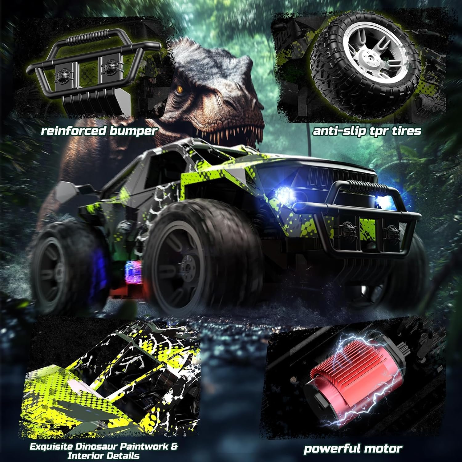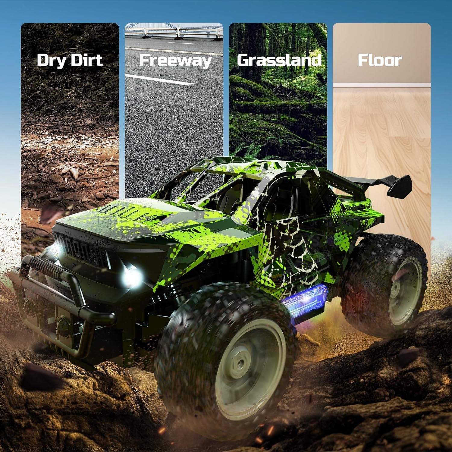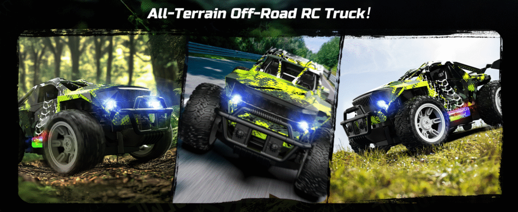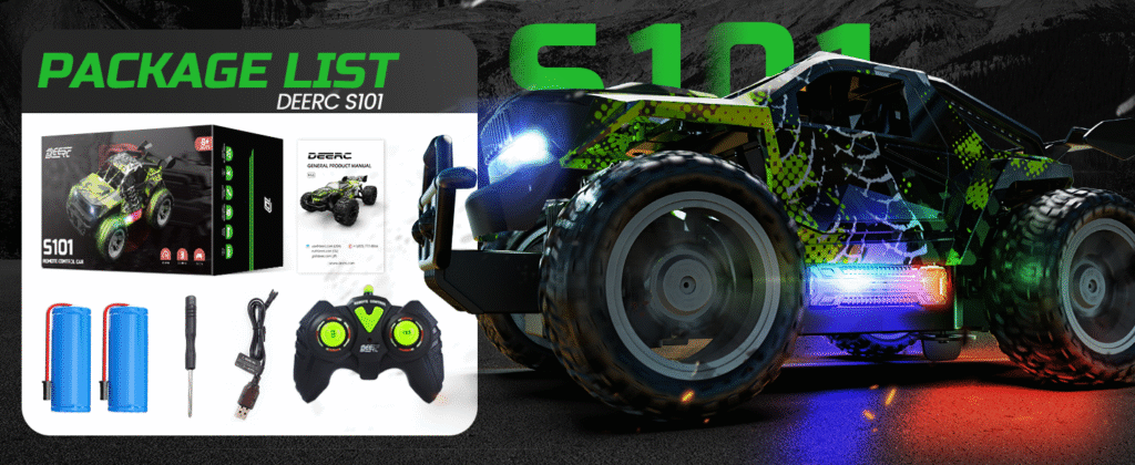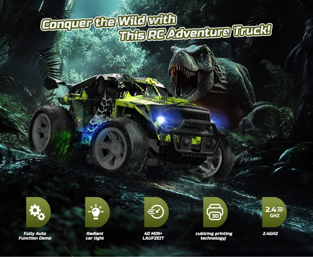 Descoperă distracția fără limite cu mașina cu telecomandă DEERC, model 1:18 RC Monster Truck, ideală pentru copii pasionați de viteză, lumină și aventură! Cu un design robust, roți mari și suspensii independente, această mașinuță este pregătită pentru curse off-road pe orice tip de teren: nisip, iarbă, asfalt sau pietriș.