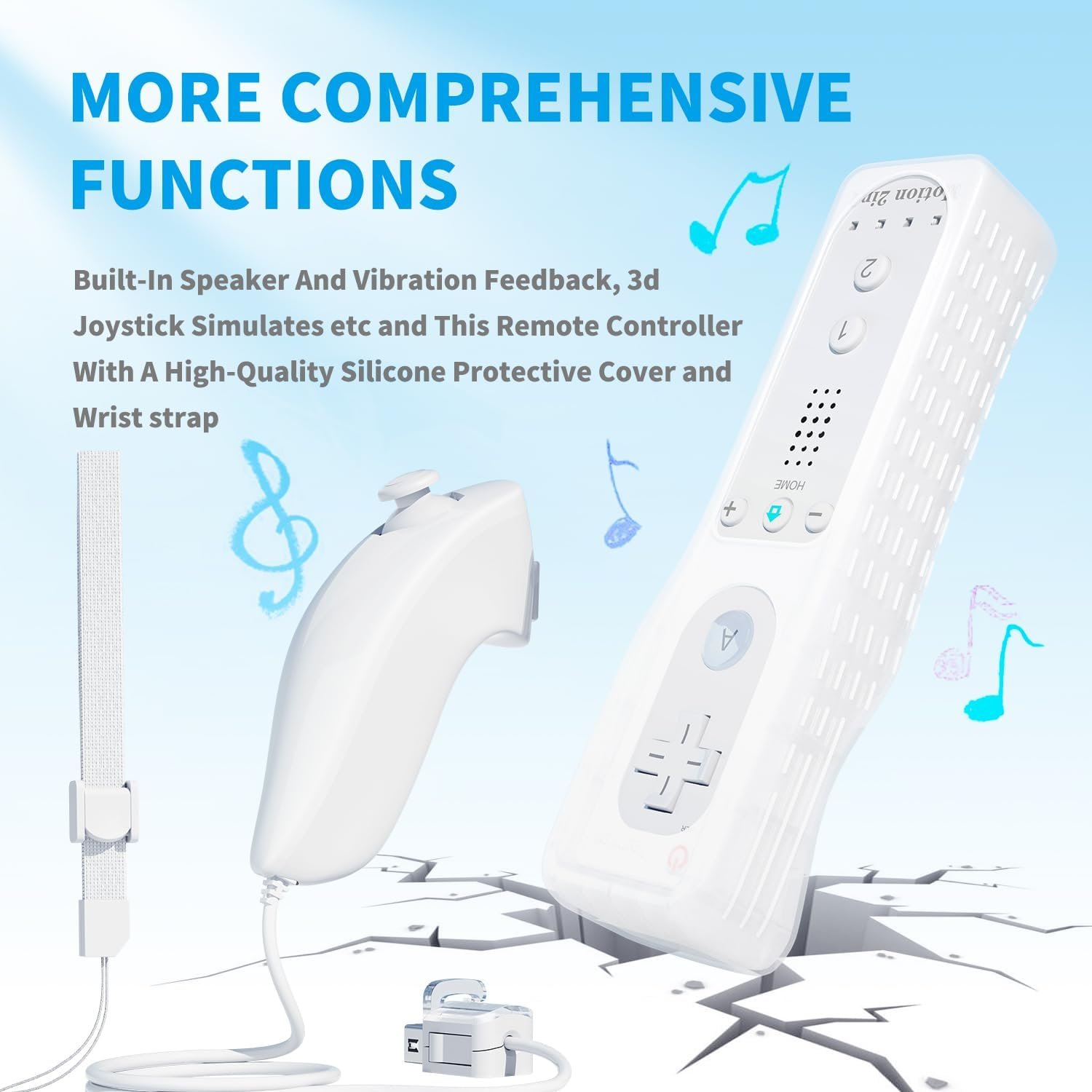 Controlerele sunt echipate cu Motion Plus încorporat, eliminând necesitatea utilizării unor accesorii suplimentare. Designul ergonomic garantează confort chiar și în sesiunile de joc prelungite, iar culoarea albă clasică se potrivește perfect cu stilul original al consolelor Wii.