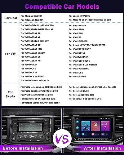 Redefinește confortul și divertismentul din mașina ta cu această unitate multimedia Android de ultimă generație, compatibilă cu o gamă largă de modele Volkswagen, Skoda și Seat. Cu funcții inteligente precum Wireless CarPlay, navigație integrată și cameră pentru marșarier, acest dispozitiv este soluția ideală pentru o experiență modernă la volan.
