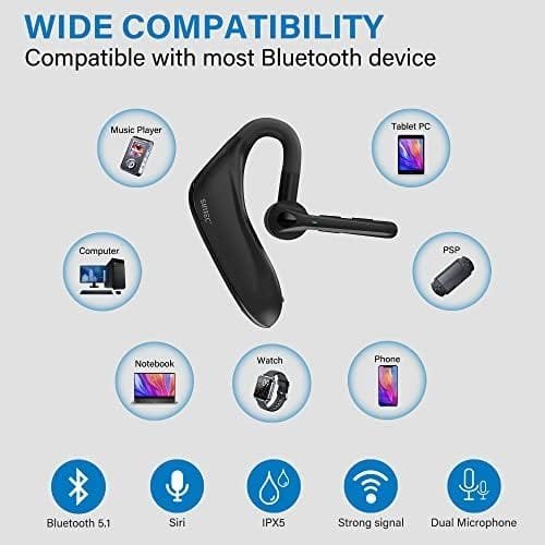 Căști Bluetooth SUNITEC cu o singură ureche (Monaural) cu 45 de ore de timp de convorbire, Dual Microfoane, Căști Bluetooth USB (include Adaptor Bluetooth USB-A)