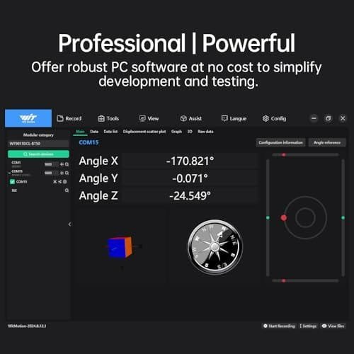 Senzorul WT9011DCL MPU9250 este un modul avansat IMU AHRS pe 9 axe echipat cu Bluetooth 5.0, proiectat pentru aplicații de măsurare precisă a mișcării și orientării. Acest dispozitiv combină un accelerometru, un inclinometru, un giroscop și un magnetometru, oferind o precizie ridicată de 0.2° pe axele XY.